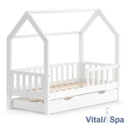 VitaliSpa Kinderbett Hausbett Gästebett Wiki Weiß 80x160cm Schublade Lattenrost