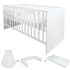 Roba Babybett Safe Asleep, Komplettbettset, Matratze, Nest, Babyschlafsack, 70x140cm Sternenzauber