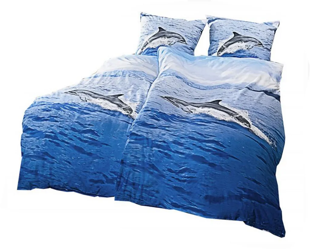 2tlg. Delfin – Meerstiere – 1 Stück Wende Bettwäschegarnitur Bettwäsche Ca. 135x200cm Und 1 Stück Kissenbezug Ca. 80x80cm 100% Baumwolle Mit Reißverschluss, 60° Wäschen