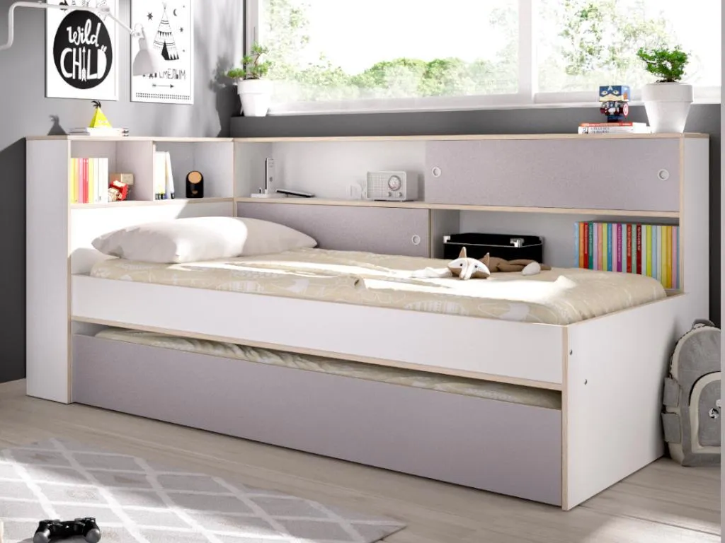 Ausziehbett Mit Stauraum – 90 X 190 Cm & 90 X 200 Cm – Weiß & Grau – LOSIANA