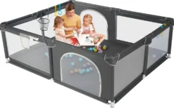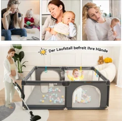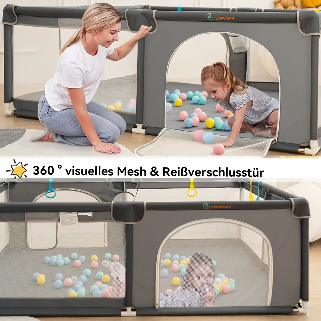 Baby Laufgitter Laufstall Absperrgitter 160 X 200cm Mit Aufbewahrungstasche Aktivitätszentrum Rutschfester Basis, Atmungsaktivem Netz Sicherheitsspielplatz, Grau