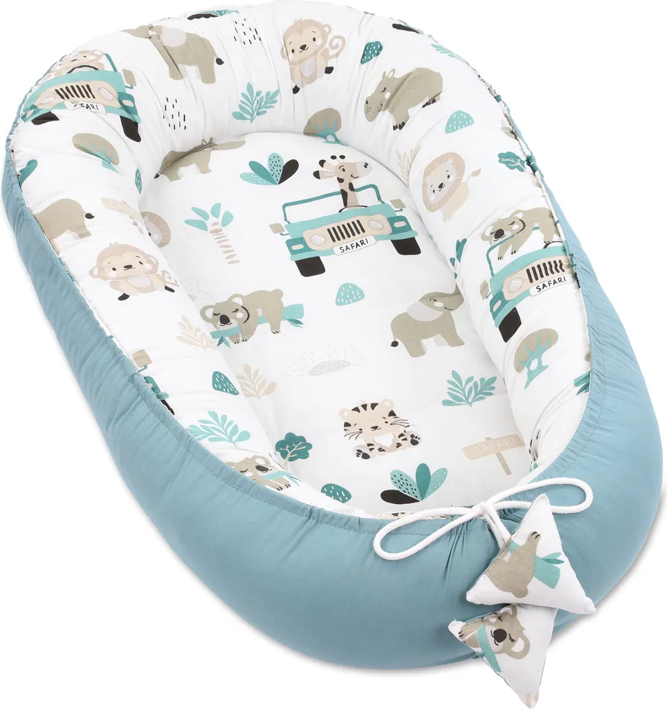 Babynest Kokon Neugeborene 90 X 50 Cm – Handmade Kuschelnest Baby Nestchen Mit Baumwolle Afrika Blau