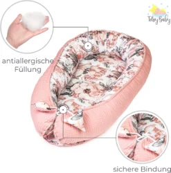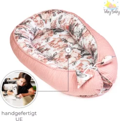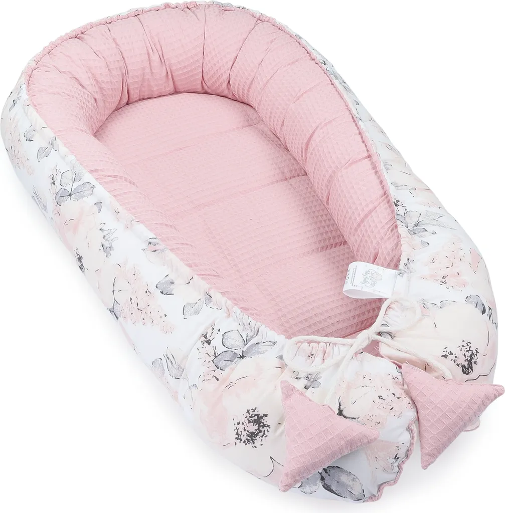Babynest Neugeborene Nestchen Baby 90×50 Cm – Kokon Handmade Zweiseitig Aus Baumwolle Waffel Mit Babynestchen Wilde Rose Rosa