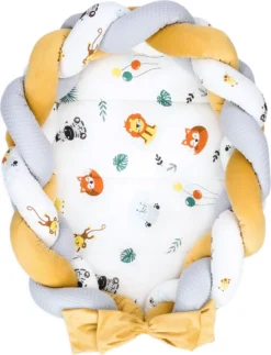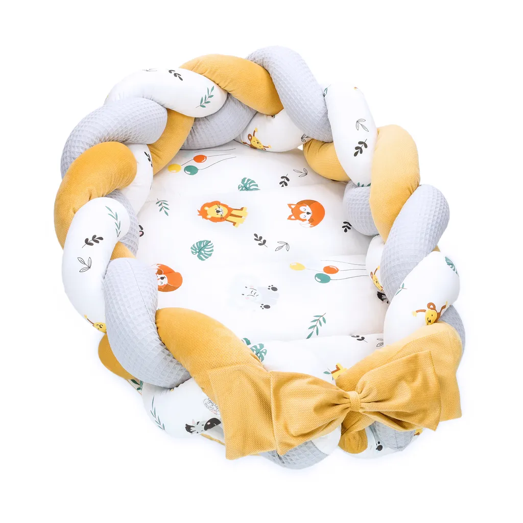 Babynest Neugeborene Nestchen Baby – Velvet Kuschelnest Mit Zopf Kissen Zerlegbares Set Zweiseitig Babynestchen Babybett 75X45, Safari