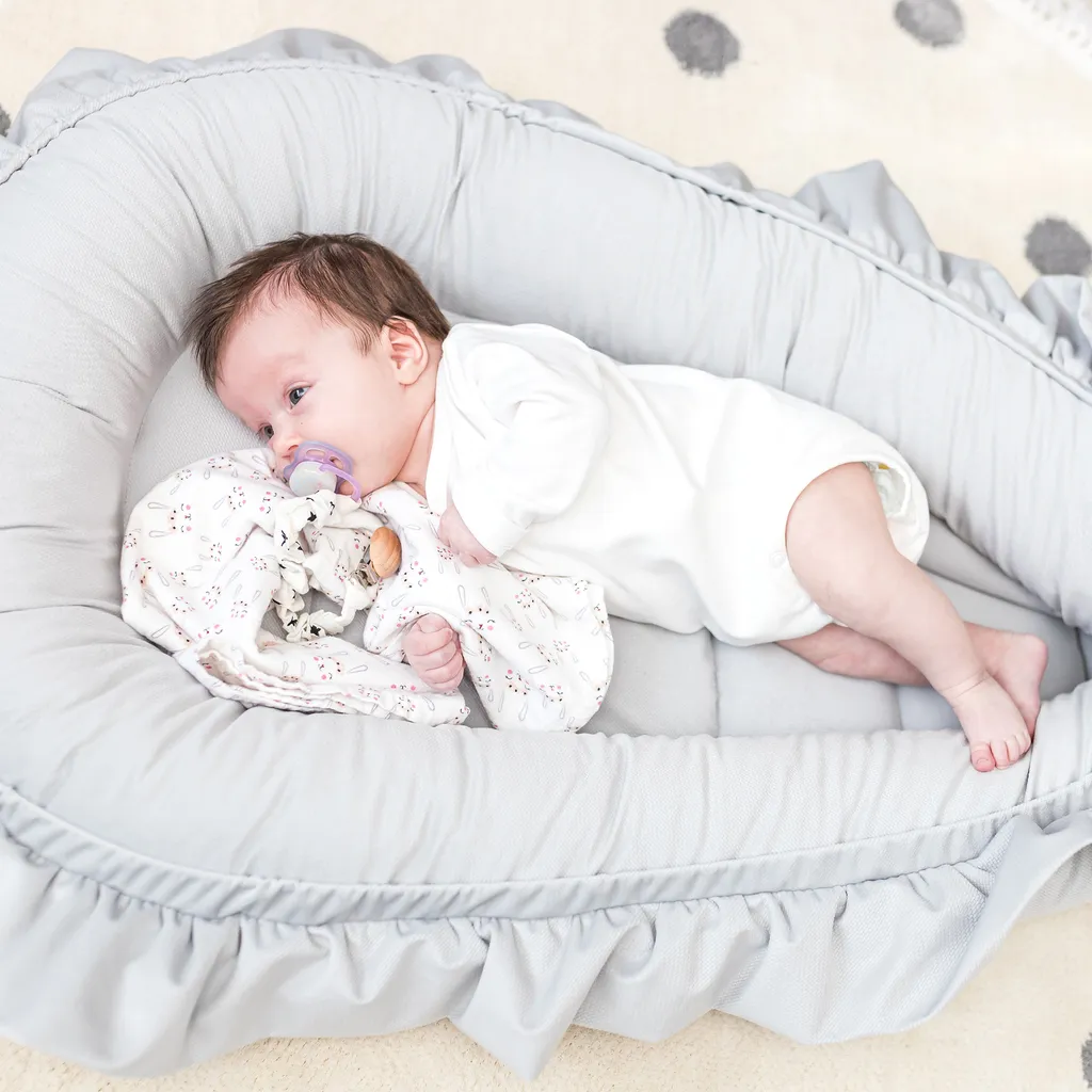 Babynestchen Velvet Kuschelnest Für Neugeborene 90×50 Cm – Baby Nestchen Bett Kokon Fleecestoff Grau