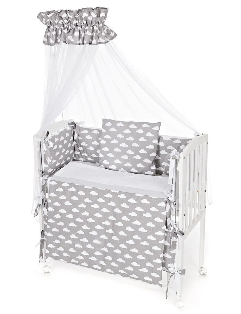 Beistellbett Komplett Set 90 × 40 Weiß Wolken Grau Höhenverstellbar
