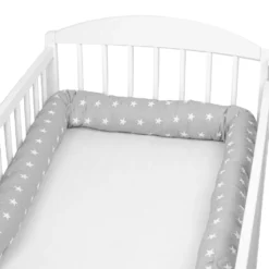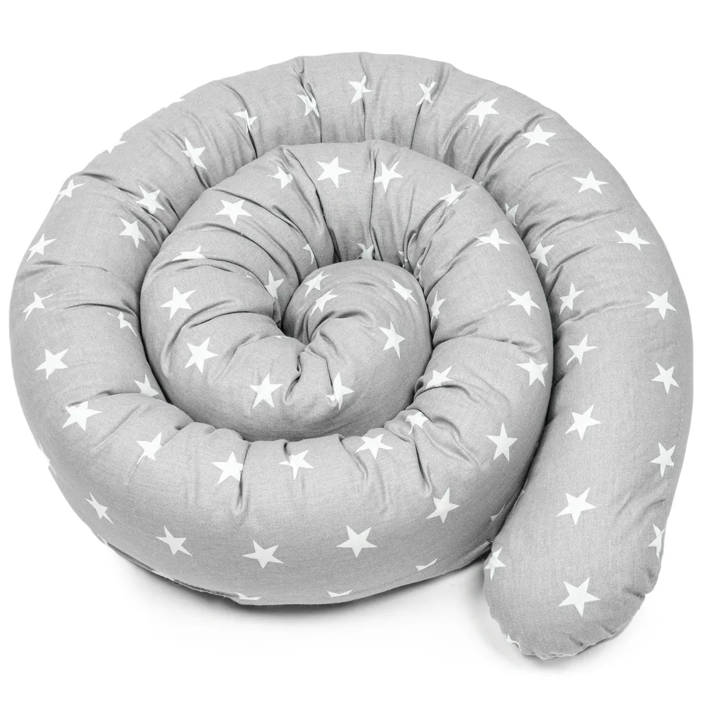 Bettschlange 300 Cm Nestchenschlange Für Baby Bettrolle 3m Bettumrandung Babybettschlange Grau Mit Weißen Sternen