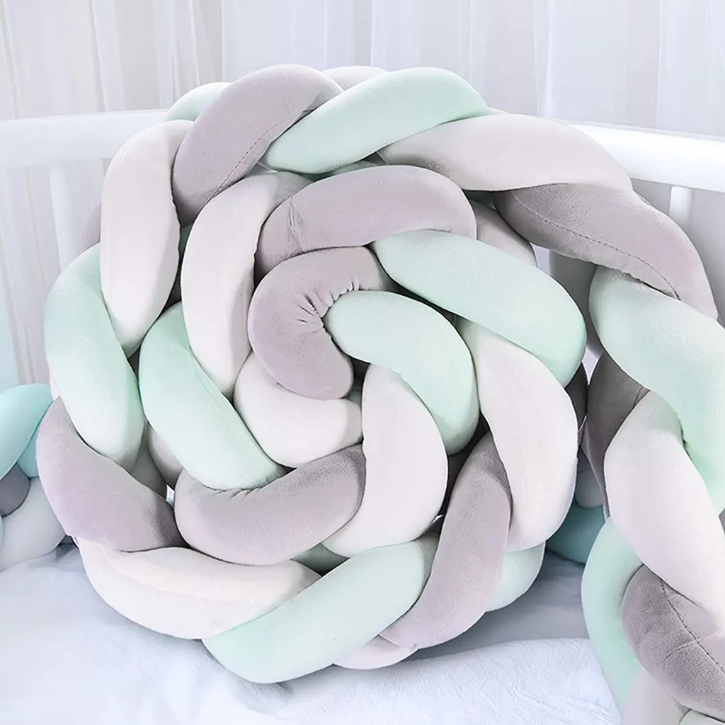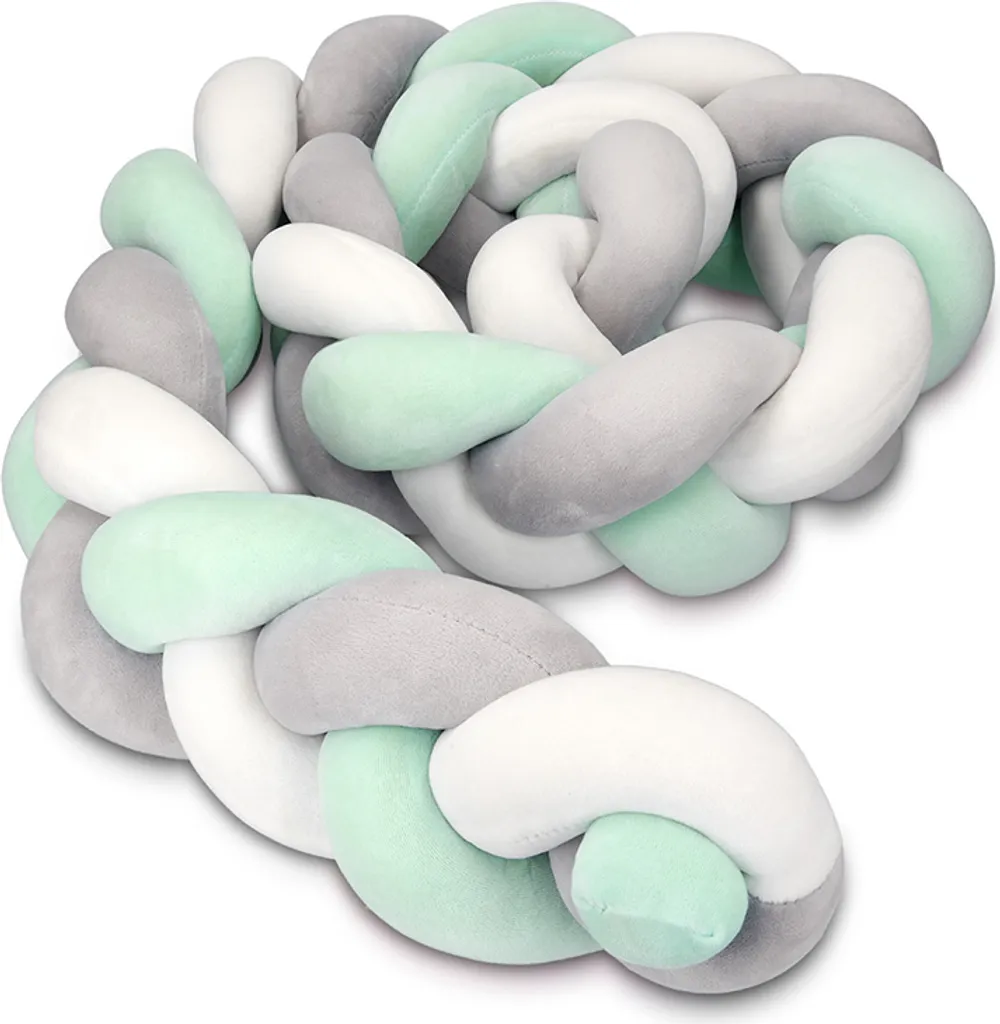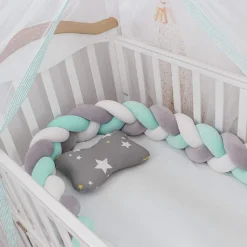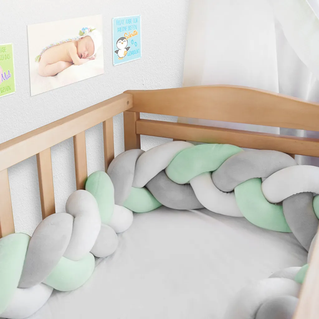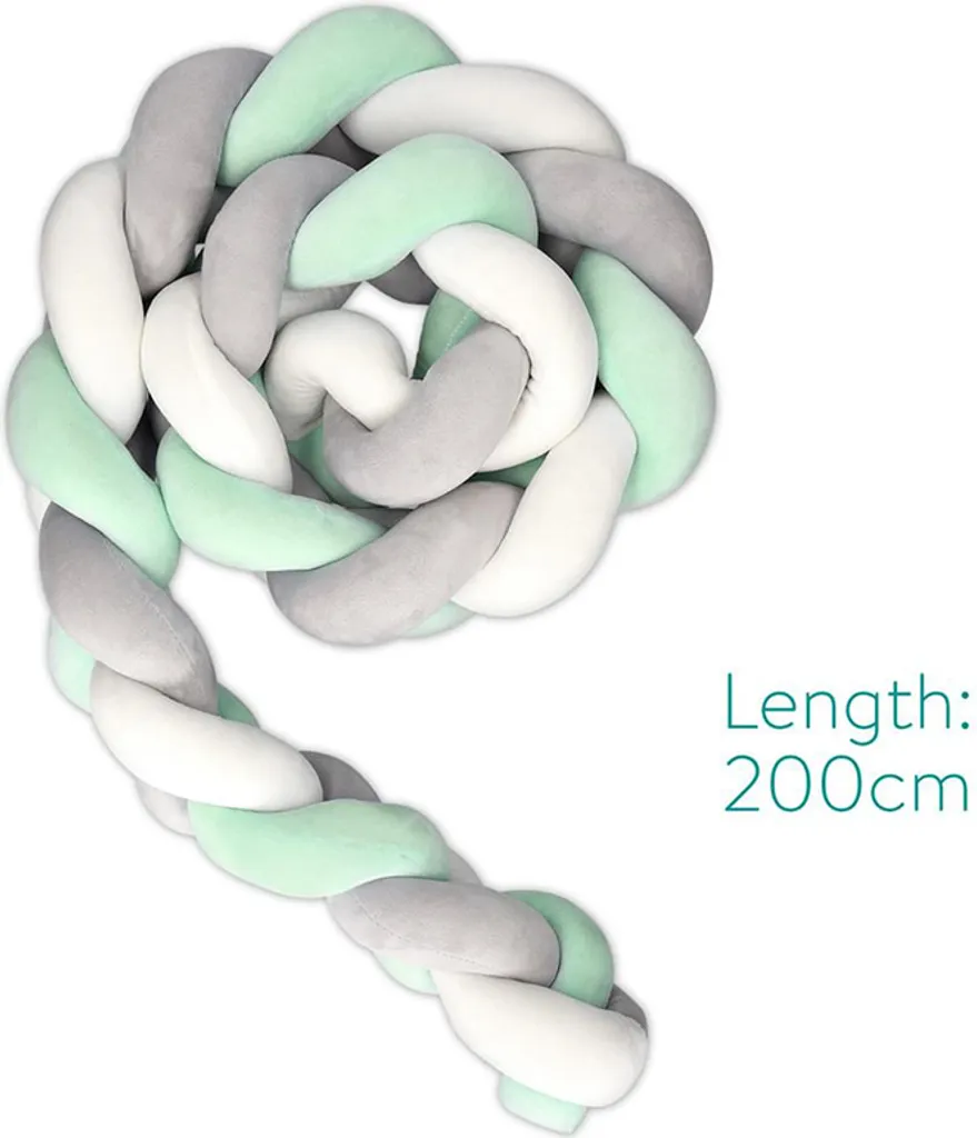 Bettschlange Geflochten,Bettschlange Geflochten Bettumrandung Babybett – Nestchen Für Baby 2M(Grau+weiss+Grün)