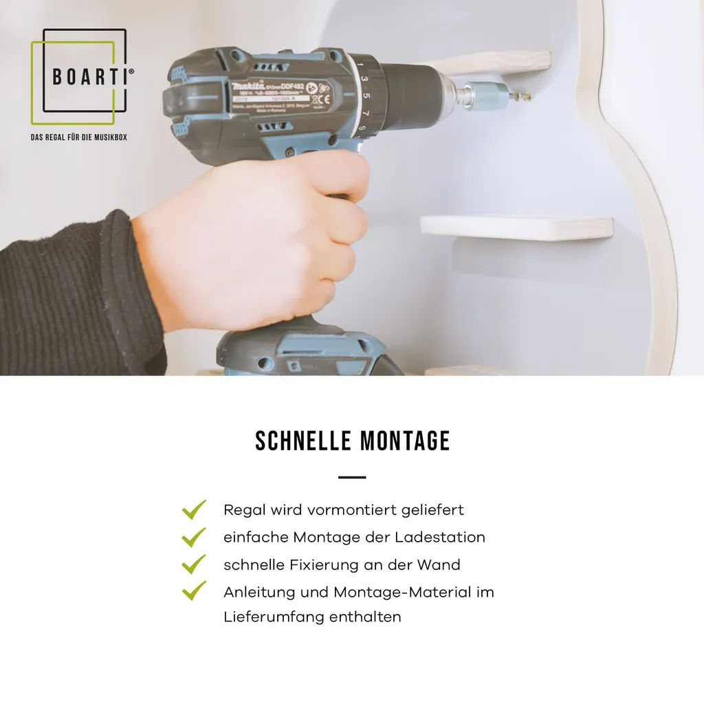 | Zusätzliche Varianten | BOARTI® "Haus small, grau"- das Regal für die Musikbox, BOARTI® "Trecker small, grau"- das Regal für die Musikbox, BOARTI® "Wal small, grau"- das Regal für die Musikbox, BOARTI® "Wolke small, grau"- das Regal für die Musikbox |