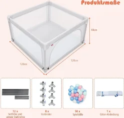 Schreibe die erste Rezension für „COSTWAY 120 X 120cm Baby Laufstall Mit 50 Spielbällen, Laufgitter Mit Atmungsaktivem Netz Und Reißverschluss, Krabbelgitter Mit Tür, Laufgitterzelt Für Säuglinge Und Kleinkinder (Grau)“ Antwort abbrechen