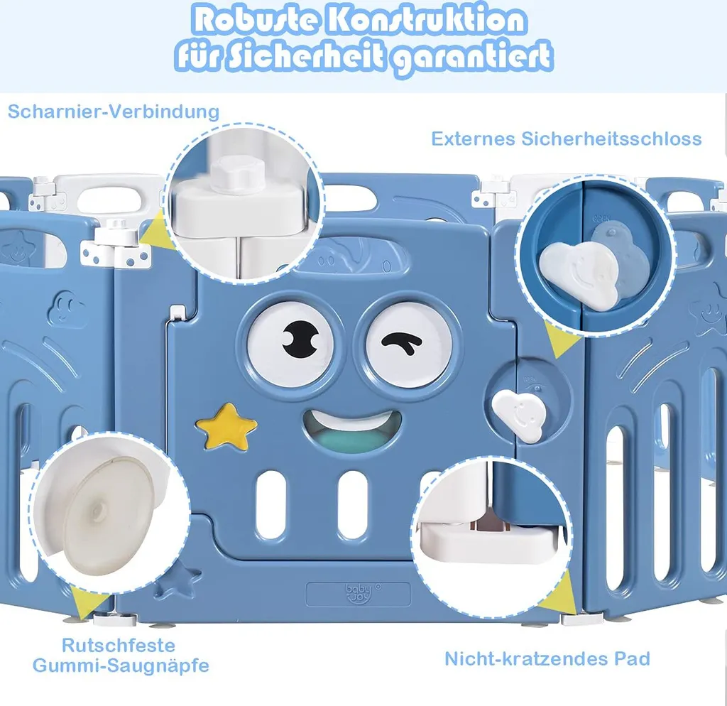 COSTWAY Laufgitter Laufstall Mit Tür Und Spielzeugboard Faltbar Für Säuglinge Und Kleinkinder Blau