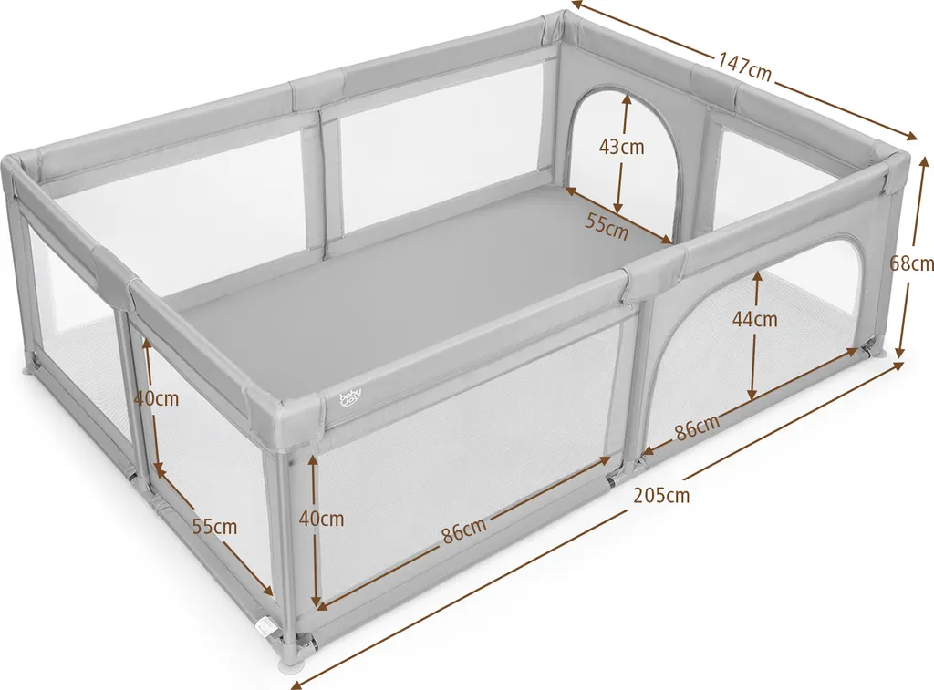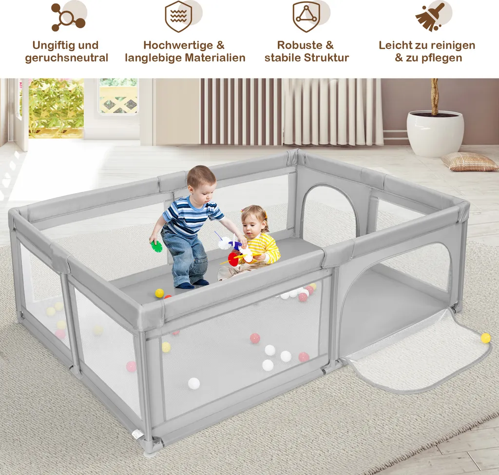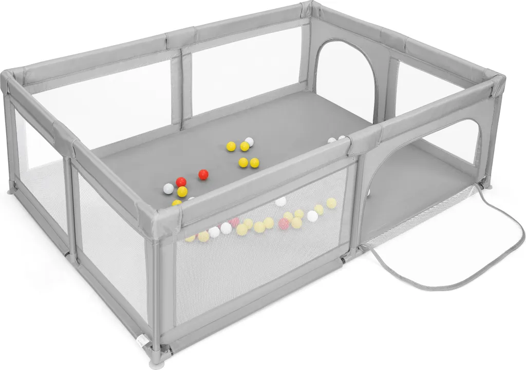 COSTWAY Baby Laufstall Mit 50 Bällen & 2 Türen, Laufgitter Mit Atmungsaktivem Netz Und Reißverschluss, Krabbelgitter, Laufgitterzelt Für Säuglinge Und Kleinkinder (Grau)