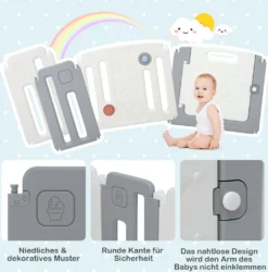 COSTWAY Faltbares Laufstall, Baby-Laufgitter Mit Tür & Spielpaneel & Sicherheitsschloss, Mit Whiteboard & Kugel & Soundknopf, Absperrgitter Für Babys & Kinder Von 6-36 Monaten, Beige (12+2 Paneelen)