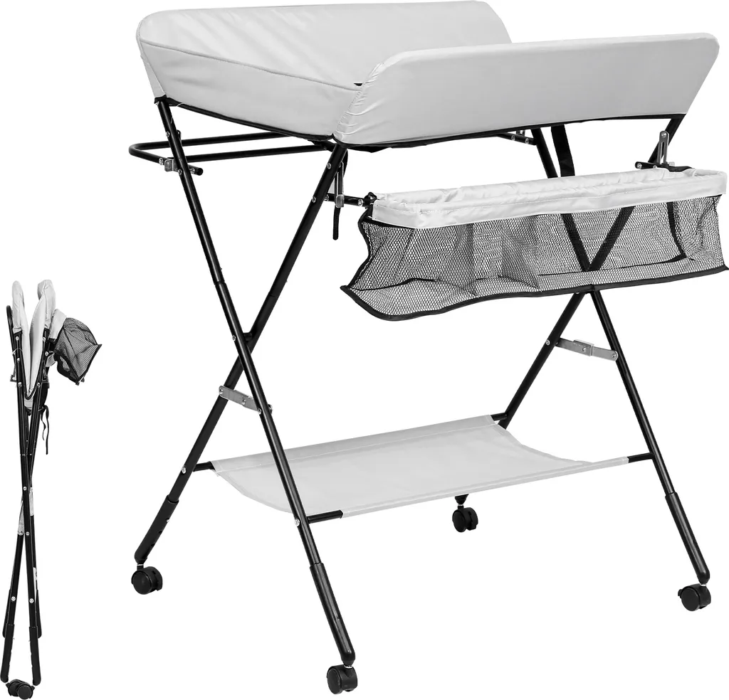EINFEBEN Baby Wickeltisch Mulde Badewanne Höhenverstellbare Klappbar Wickelkommode Klappbarer Höhenverstellbarer Mit Auflage Mit Abschließbaren Rädern Sicherheitsgurt