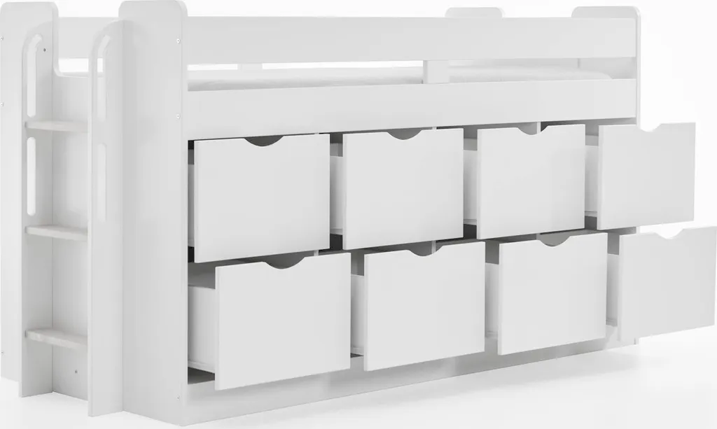 Funktions-/Hochbett FLORI, LF 90 X 200 Cm Inkl. Lattenrost Und 8 Großen Schubladen