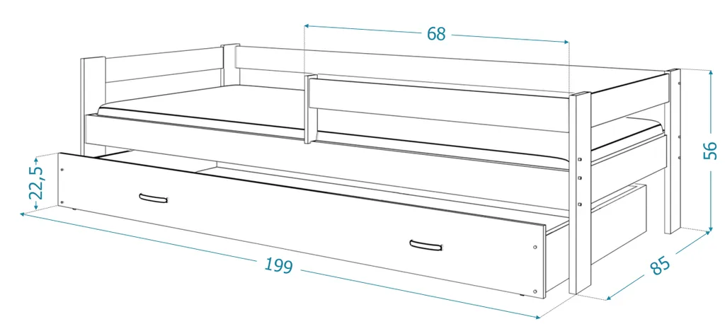 FURNIX Kinderbett CADEN 80×190 Mit Schublade Rausfallschutz & Matratze Weiß-Blau