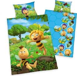 Herding Biene Maja Bettwäsche / Babybettwäsche / Kleinkinderbettwäsche, 100% Baumwolle ( Renforcé ), 40×60 + 100×135 Cm