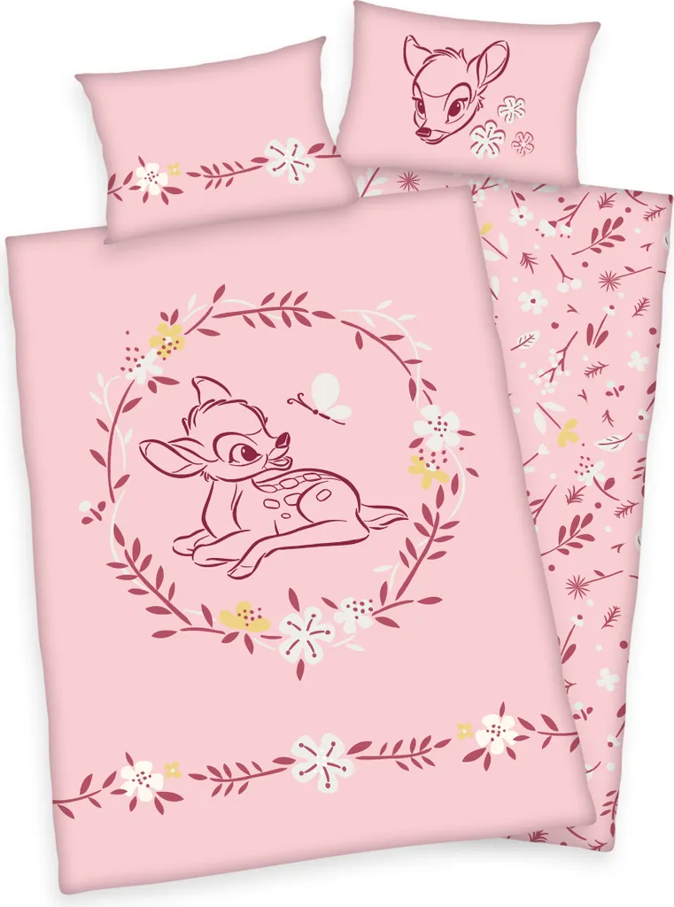 Herding Disney Bambi Baby Bettwäsche 100×135 + 40×60 Cm Baumwolle Wendebettwäsche Rosa 2 Teilig