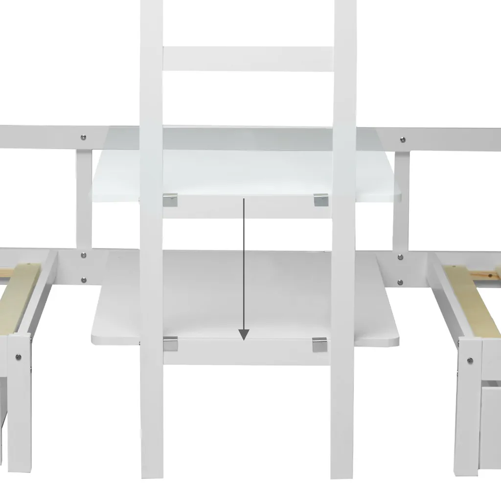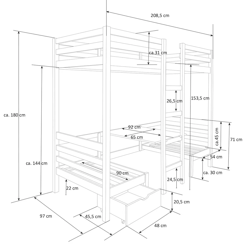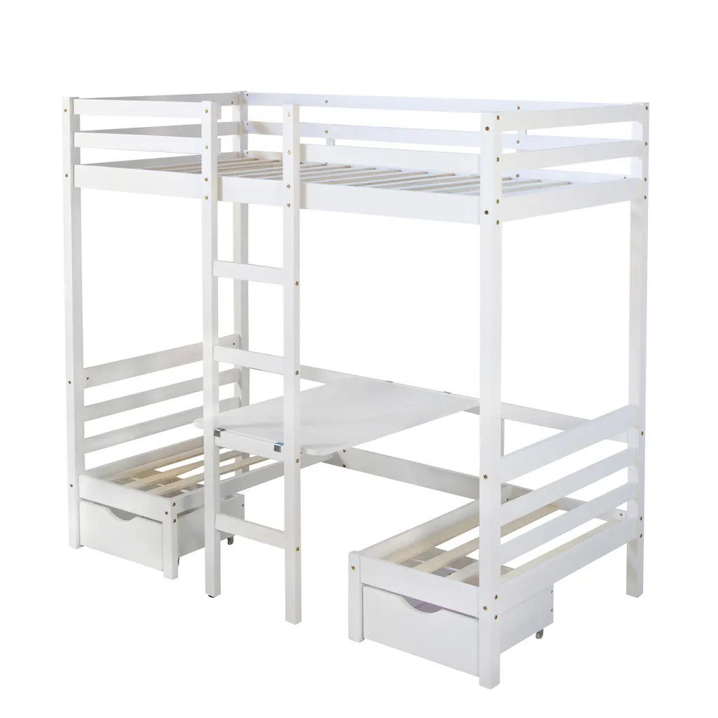 Homestyle4u 1727, Kinder Hochbett Mit Schreibtisch Weiß, Massivholz Kiefer, 90×200 Cm