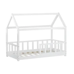 Homestyle4u 2048, Kinderbett Weiß Hausbett Mit Rausfallschutz 80×160 Cm Bodenbett Montessori Bett Bettenhaus Lattenrost