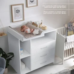 Infantastic® Wickelkommode – Inkl. 3 Großen Schubladen Und Fach, 85x71x96 Cm, Weiß – Wickelschrank, Wickeltisch Aufsatz, Wickelaufsatz, Baby Möbel Kommode