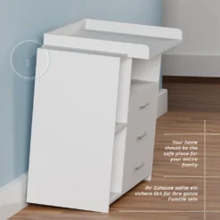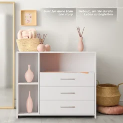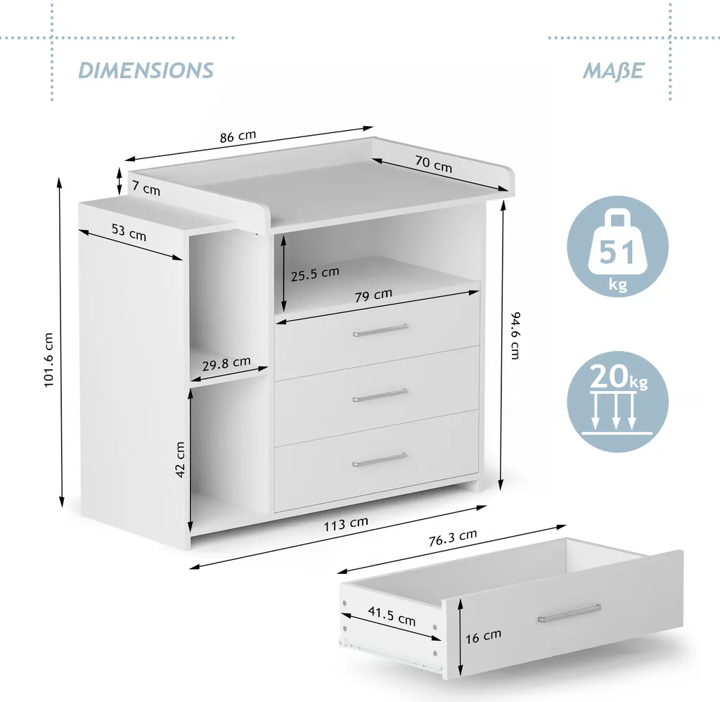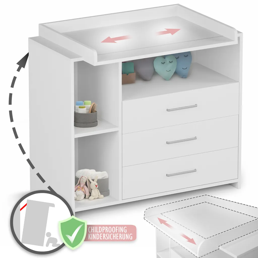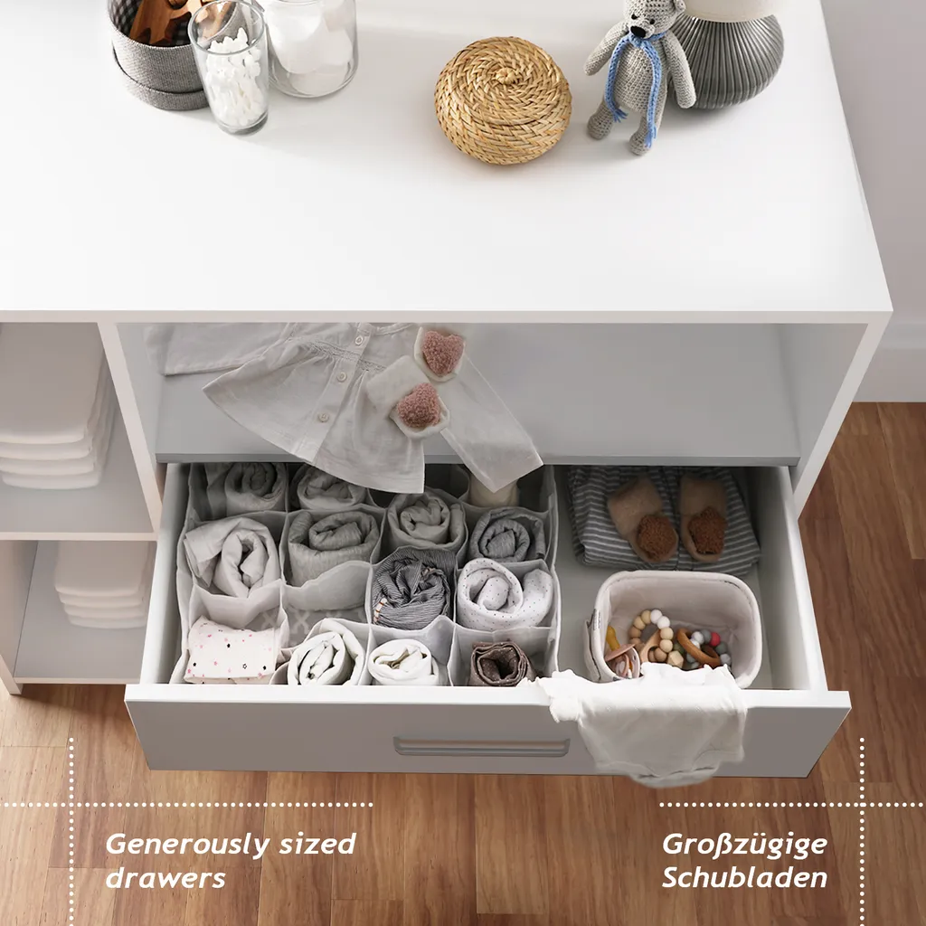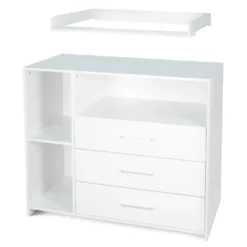 Infantastic® Wickelkommode Mit 3 Schubladen Und 3 Fächern, Ca. 113 X 53 X 101.6 Cm, Inkl. Wickelaufsatz Abnehmbar, Weiß – Baby Kommode, Babymöbel, Wickeltisch