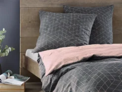 Irisette Mako Satin Bettwäsche 135×200 2tlg Grau Rosa | Bettwäsche-Set Aus 100% Baumwolle | 2 Teilige Wende-Bettwäsche 135×200 Cm & Kissen 80×80 Cm | Geometrisches Muster
