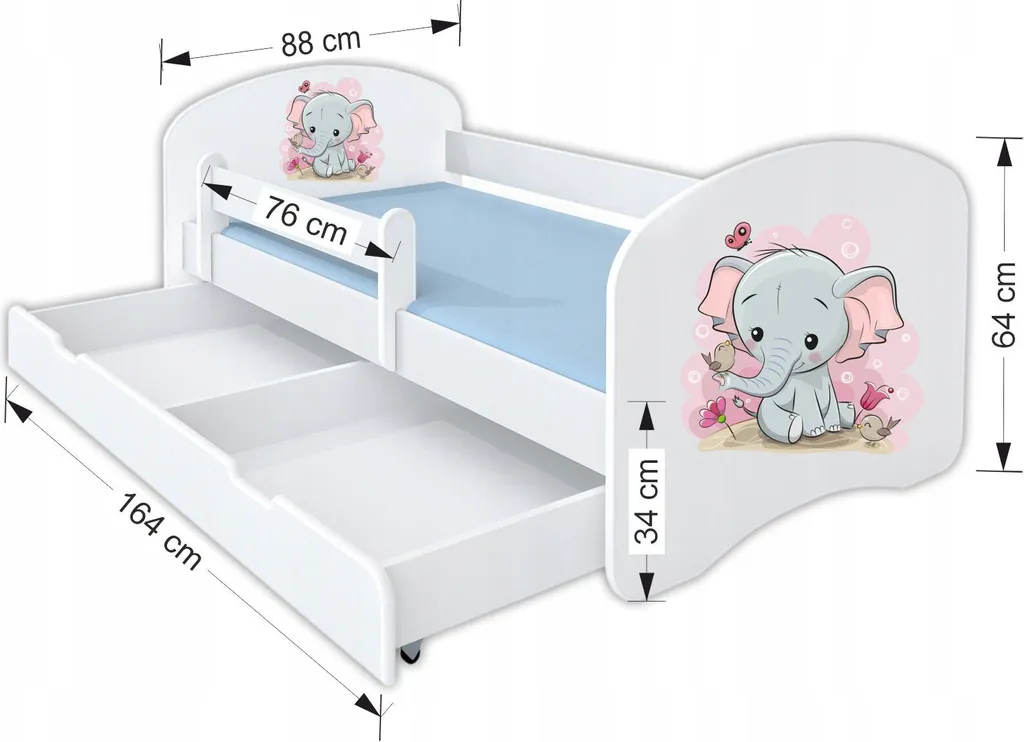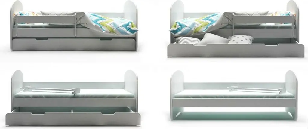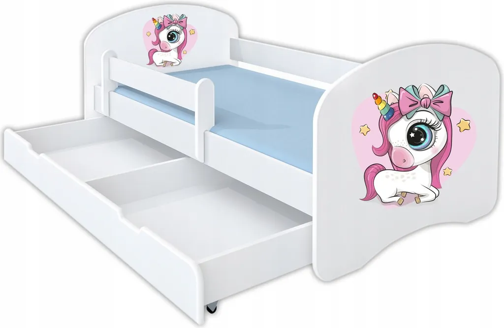 Kinderbett HAPPY 160×80 Mit Matratze, Schublade, Rausfallschutz & Lattenrost In Weiß – Einhorn – Jungen Mädchen Bett