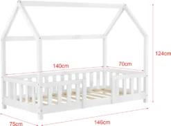 Kinderbett Sisimiut 70×140 Cm Hausbett Mit Rausfallschutz Bettenhaus Mit Lattenrost Kiefernholz Weiß