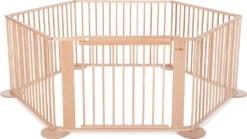 Roba Laufgitter ‚roba Style‘, 6-eckig, Spielgitter Inkl. Grauer Schutzeinlage & Rollen, Holz, Weiß
