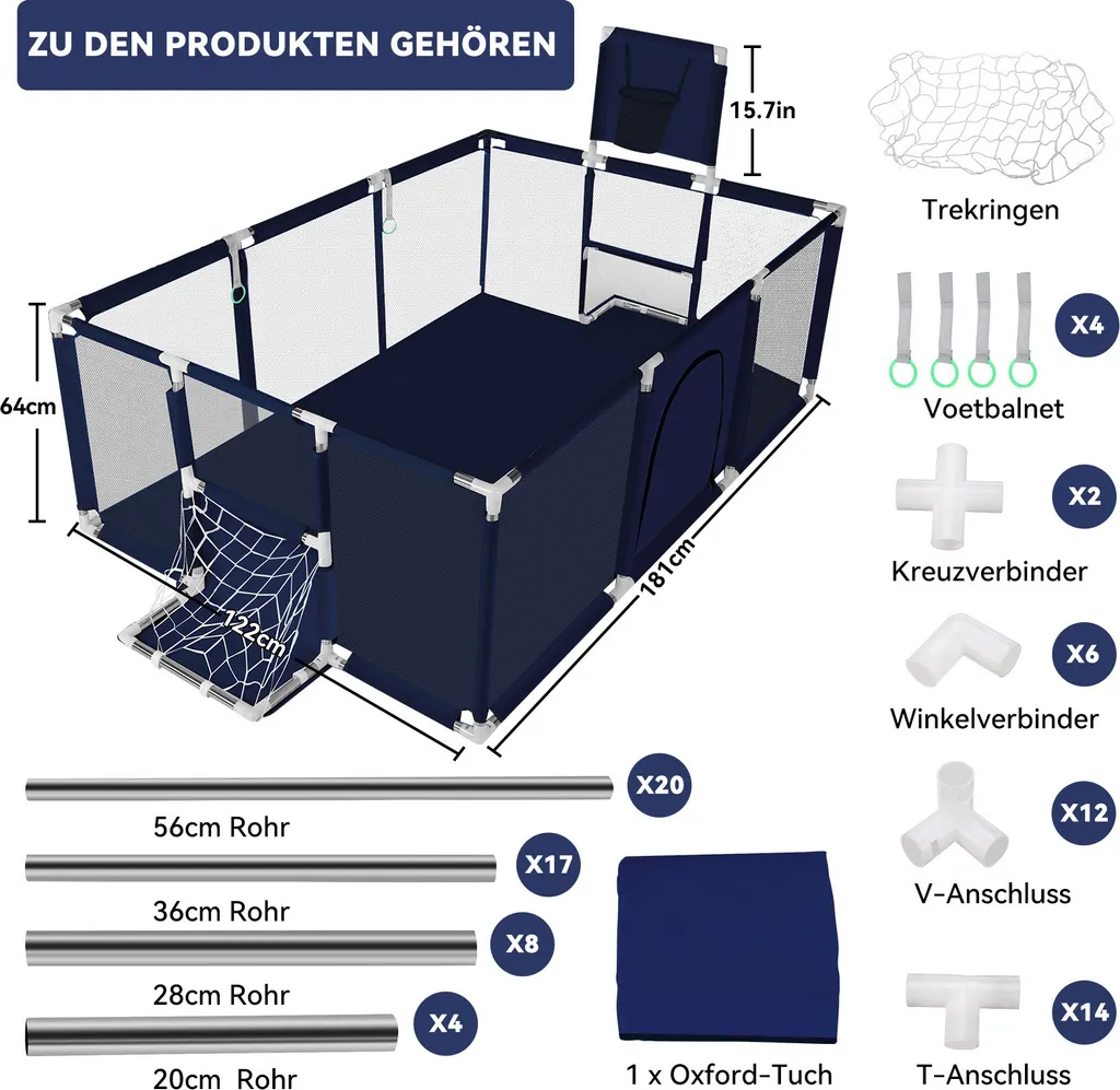 Laufstall Laufgitter Mit Basketballkorb Fußballtor Laufgitterzelt Spielgitter Absperrgitter Schutzgitter Krabbelgitter 181 X 122cm