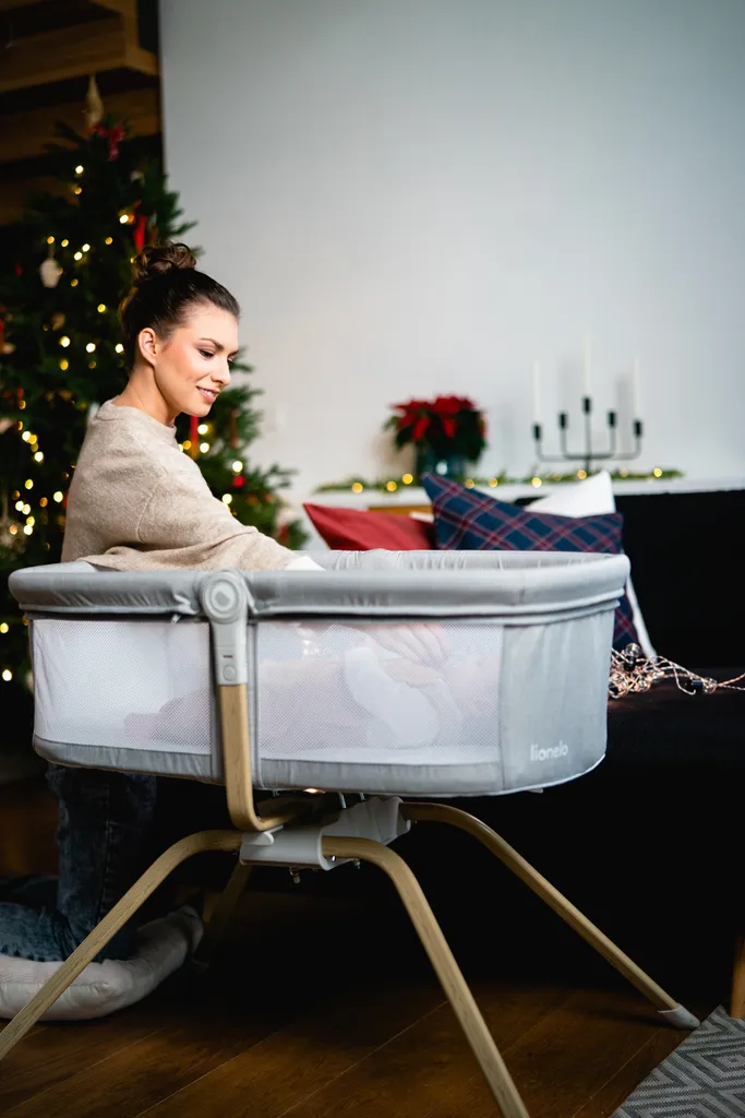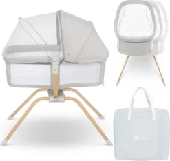 LIONELO Malin Evo Kinderbett, Babywiege, Reisebett Für Babys Mit Matratze, Kinderreisebett, Reisegitterbett, Von 0 Bis 9 Kg, Vordach, Moskitonetz, Klappbar, Schaukelsystem, Liegeverstellung, Schnelle Montage, Reisetasche, Leicht