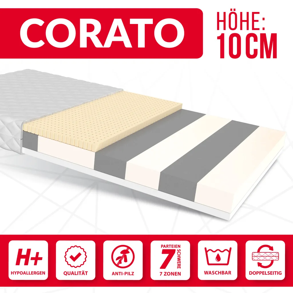 Matratze 90×190 CORATO Höhe 10 Cm Kaltschaum 7 Zonen H2 H3 Kindermatratze Premium Bezug