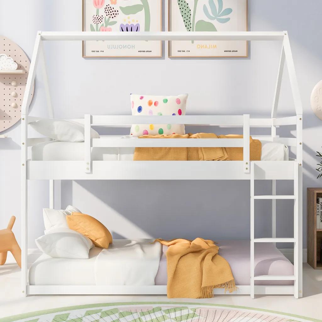 Merax Etagenbett 90×200 Cm Kinderbett Mit Leiter, 2 Einzelbetten Hochbett Für Kinder, Kiefernholzbett, Weiß