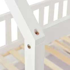 Merax Kinderbett 90×200 Cm Hausbett Mit Zaun Und Schornstein, Robuste Lattenroste Aus Kiefernholz, Kinderhaus Spielbett Für Die Kinder, Weiß