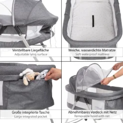 ONVAYA® Babyreisebett | Beistellbett Oder Babywiege Mit Matratze | Stubenwagen | Waschbarer Bezug | Bis 20kg | Höhenverstellbar & Zusammenklappbar