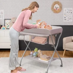 ONVAYA® Wickeltisch Klappbar | Wickelkommode Mit Auflage | Platzsparend & Mobil | Wickelkombination Mit Ablage Und Aufbewahrungskorb | Höhenverstellbar | Traglast Bis 15 Kg | Messleiste – Modell 2022
