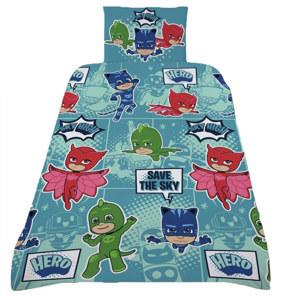 PJ Masks – Kinder Bettwäsche-Set „Heroes Of The Sky“ Wendbar SI1162 (Einzelbett) (Blau/Grün/Pink)