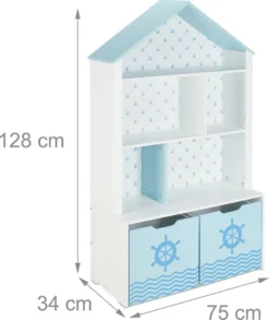 Relaxdays Kinderregal Mit Dach Im Seefahrt-Design