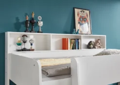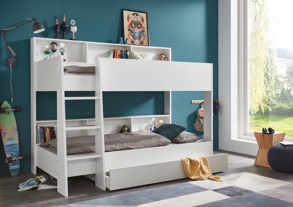 Relita Etagenbett SWAY Mit 2 X Liegeflächen 90×200 Cm, Inkl. Bodenplatte Und Regalen, Ausführung Spanplatte WeißNachbildung