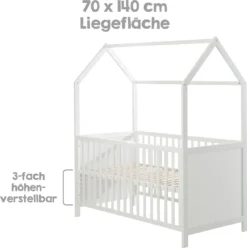 Roba Hausbett 70 X 140 Cm, Kombi-Kinderbett In Hausoptik, Weiß, 3-fach Verstellbar, Schlupfstäbe, Umbaubar Zum Juniorbett