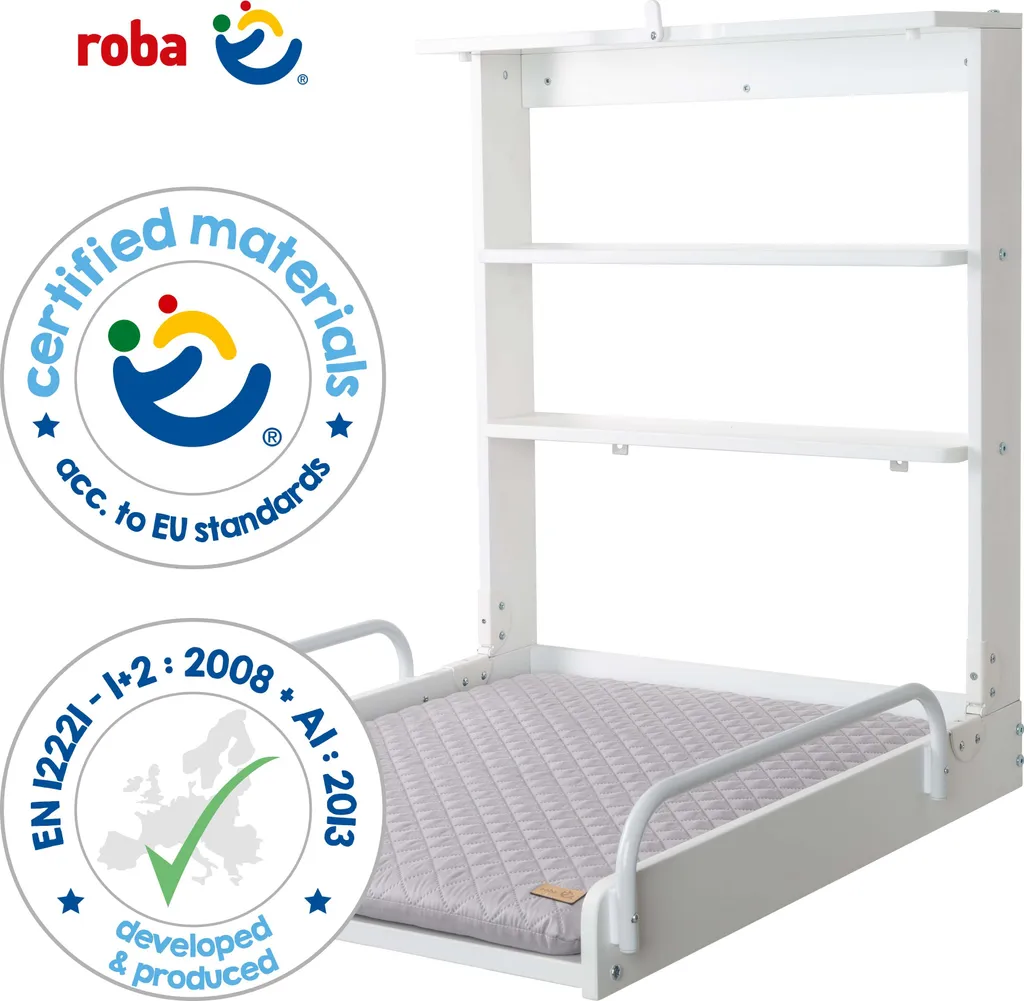 Roba Wandwickelregal, Weiß, Mit Wickelauflage ‚roba Style Grau‘, Klappbar, Platzsparend, 2 Fächer