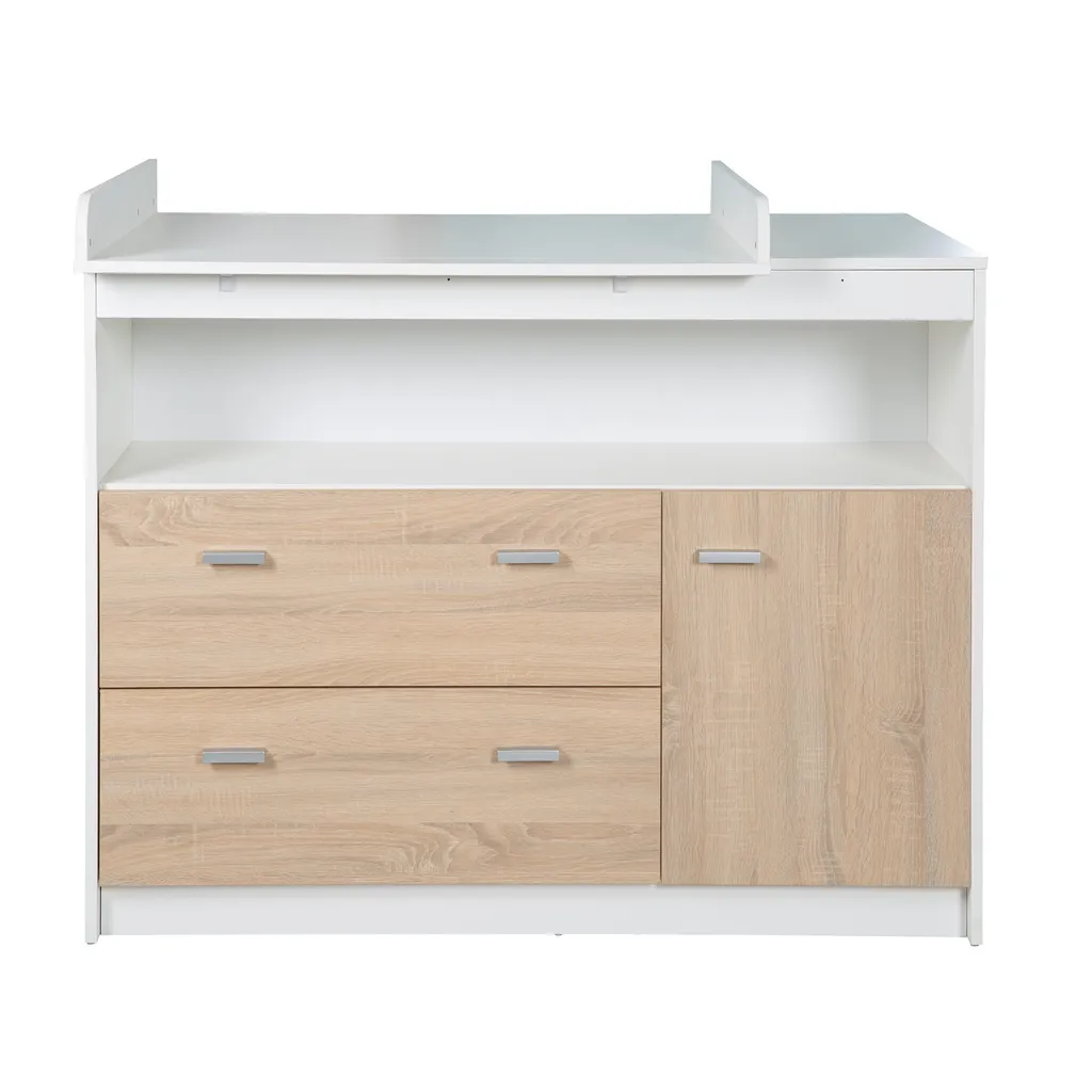 Roba Wickelkommode Mit Wickelansatz, 2 Schubladen, 1 Tür, 1 Offenes Fach, Weiß, Wickelhöhe: 90cm