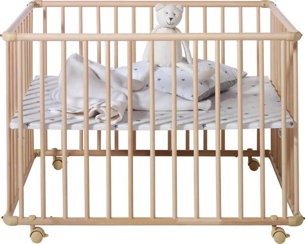 Roba Laufgitter ‚roba Style‘, 6-eckig, Spielgitter Inkl. Grauer Schutzeinlage & Rollen, Holz, Weiß