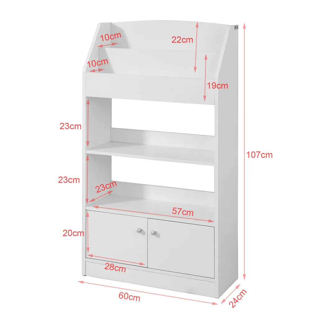 SoBuy Bücherregal Kinder Spielzeug Aufbewahrung Mit 2 Türen Weiß KMB11-W