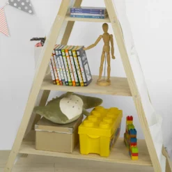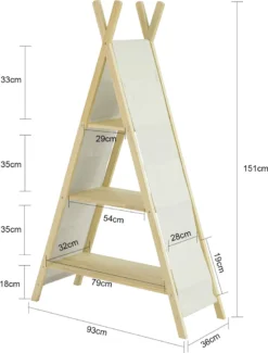 SoBuy KMB30-WN Tipi Kinderregal Mit 3 Aufbewahrungsfächer Kinder Bücherregal Spielzeugregal Kinderzimmerregal BHT Ca.: 93x151x36cm