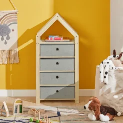 SoBuy STR08-N Aufbewahrungsregal Kinderzimmerregal Standregal Mit Schubladen Stoffkommode Schubladenschrank In Hausform BHT Ca: 46x95x33cm
