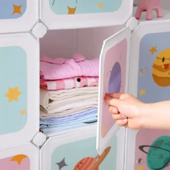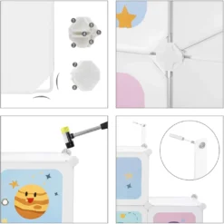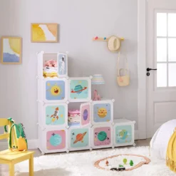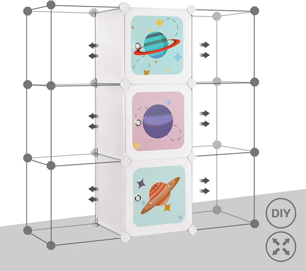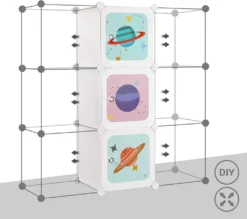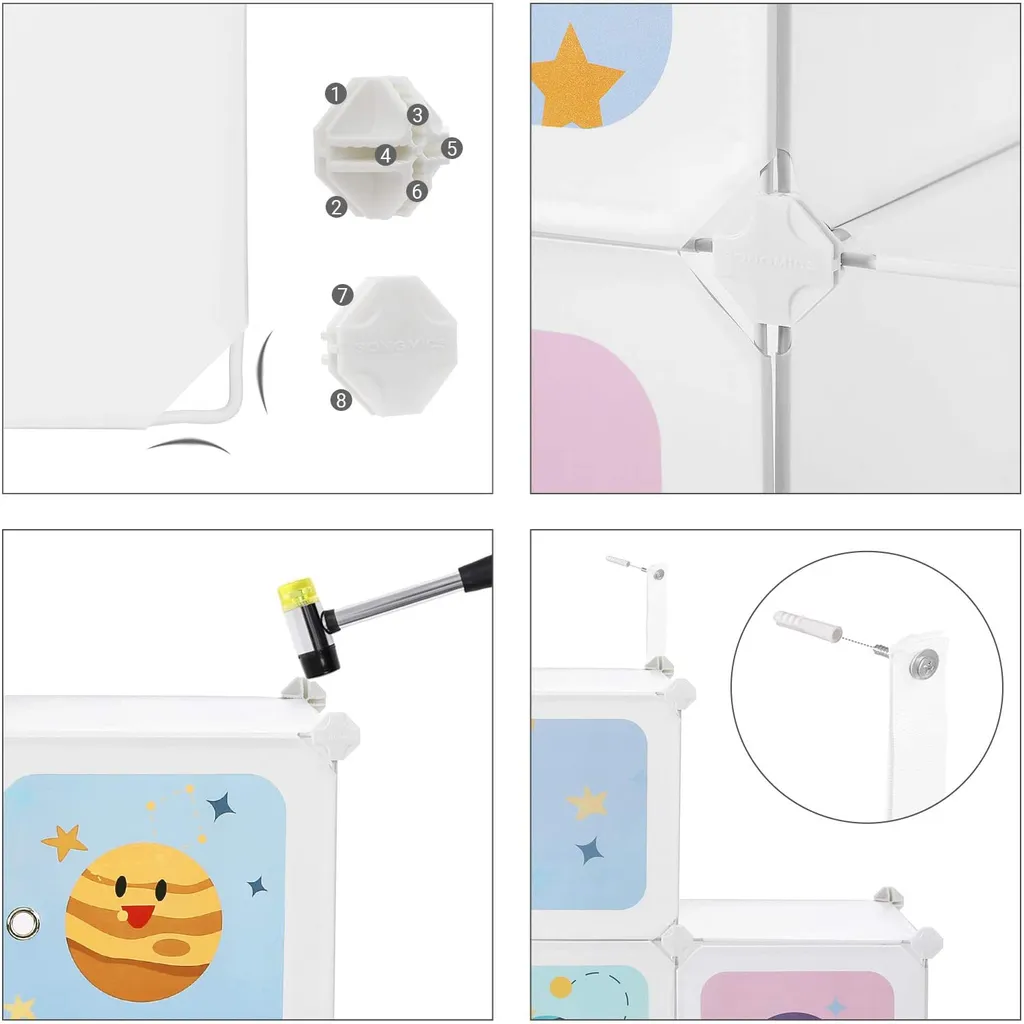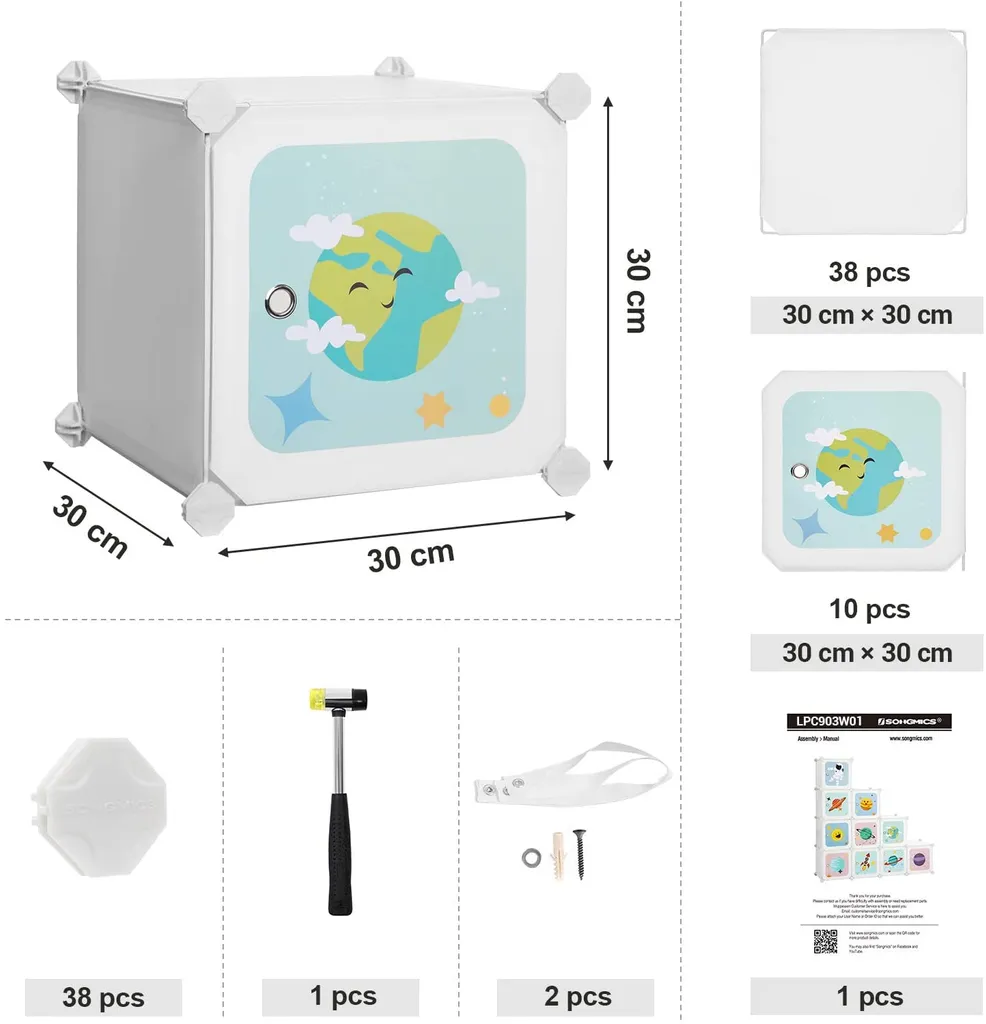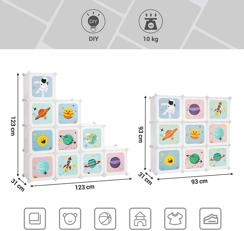 SONGMICS Kinderregal Mit 10 Würfeln, Aufbewahrungsschrank Für Kinder, 123 X 31 X 123 Cm, Regalsystem, Steckregal, Schuhregal Aus Kunststoff, Kleiderschrank Mit Türen, Weiß LPC903W01