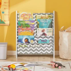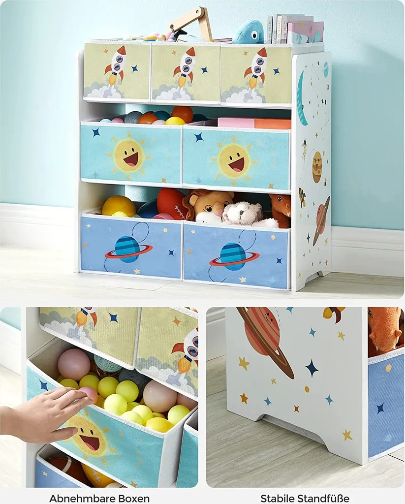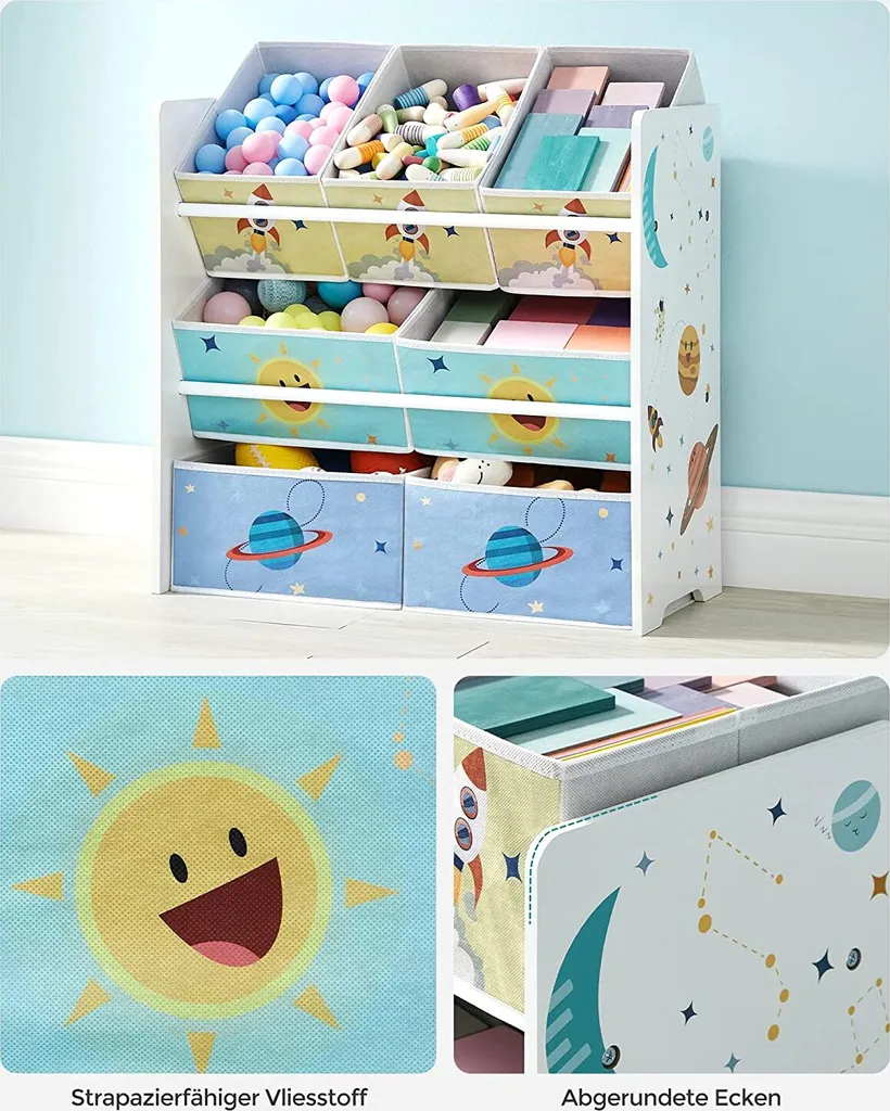 SONGMICS Kinderzimmer-Regal, Kinderregal ,Spielzeugregal Mit 7 Aufbewahrungsboxen Aus Vliesstoff, Bücherregal Kinder, Kinder-Regal Für Spielzeug, Spielzeug-Organizer, 29,5 X 62,5 X 60 Cm, Weiß GKR034W01