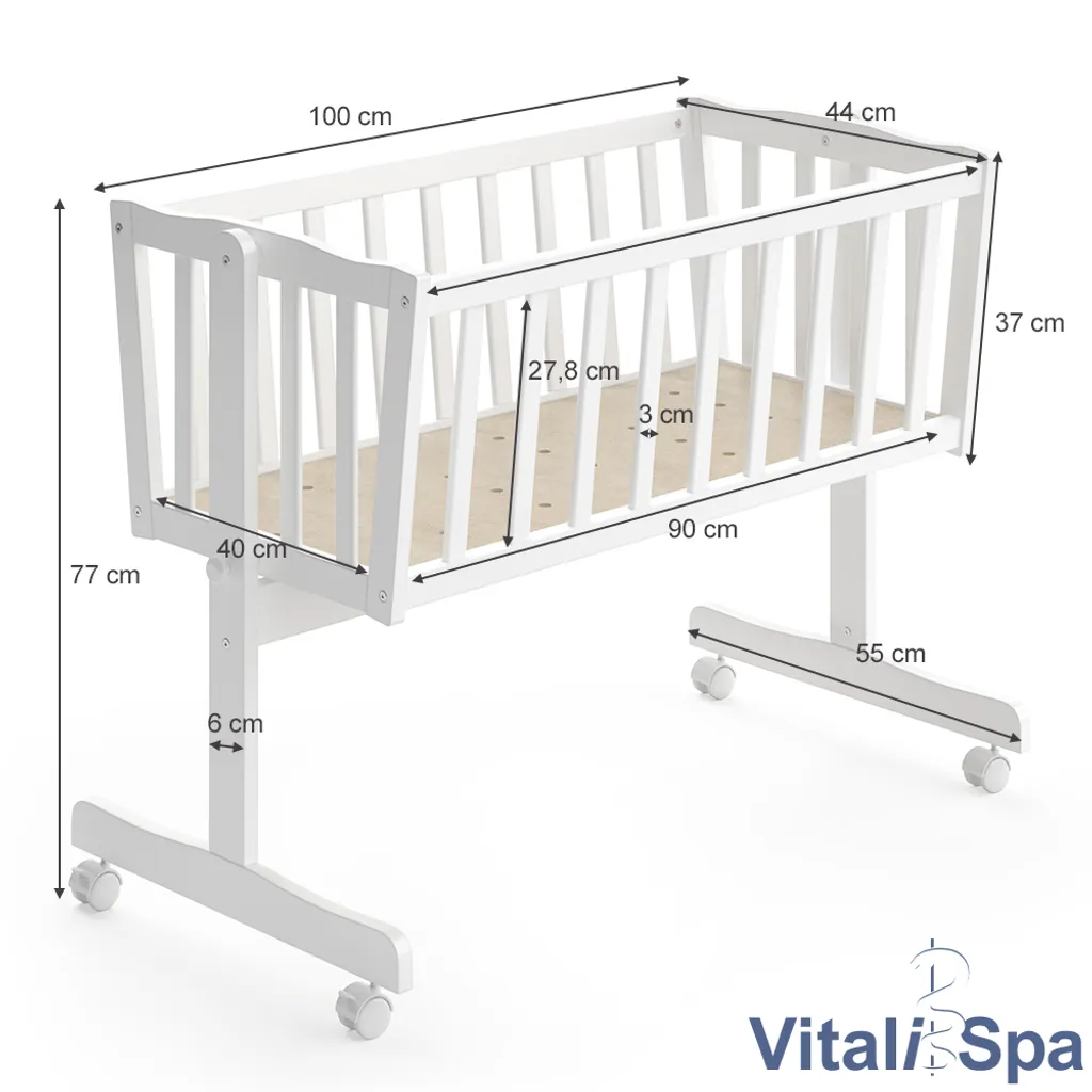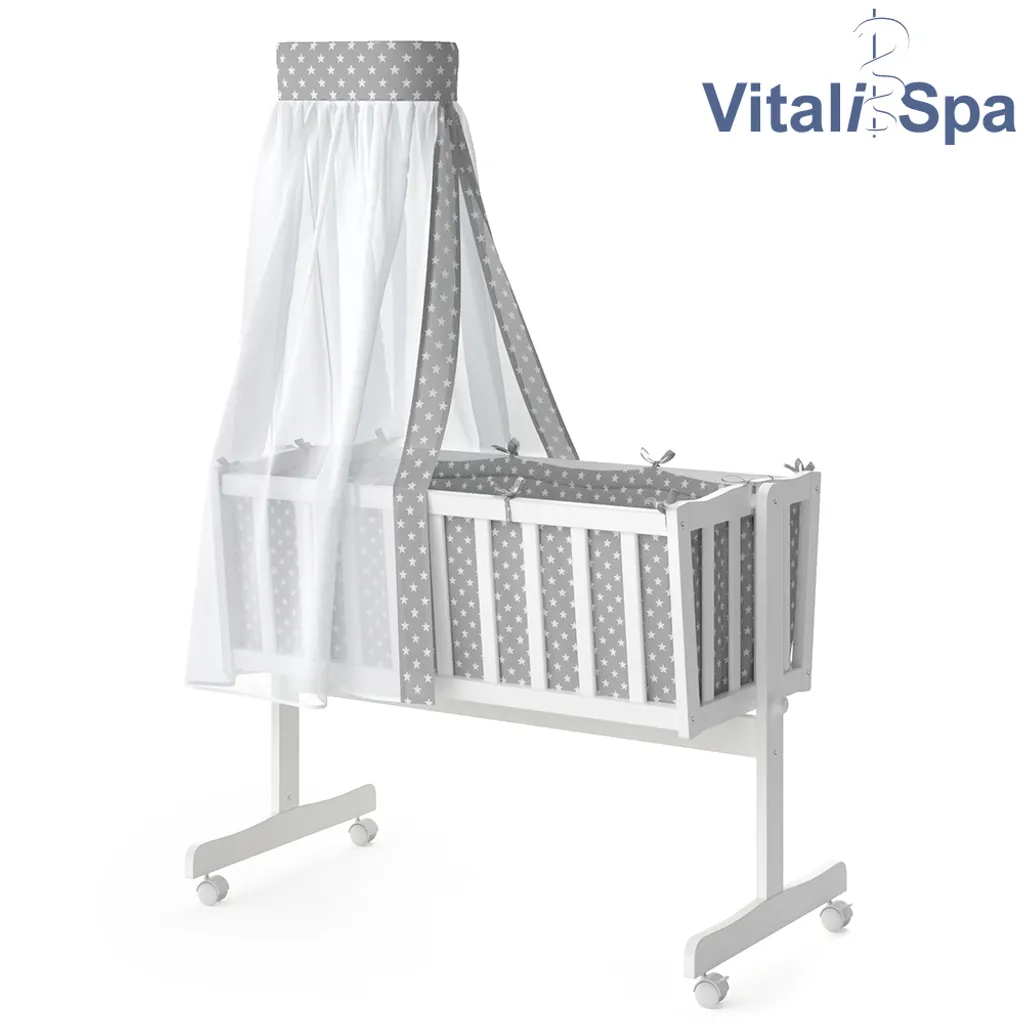 VITALISPA Wiege NOAH Schaukelwiege Babywiege Holz Weiß Grau Bett Set Buche